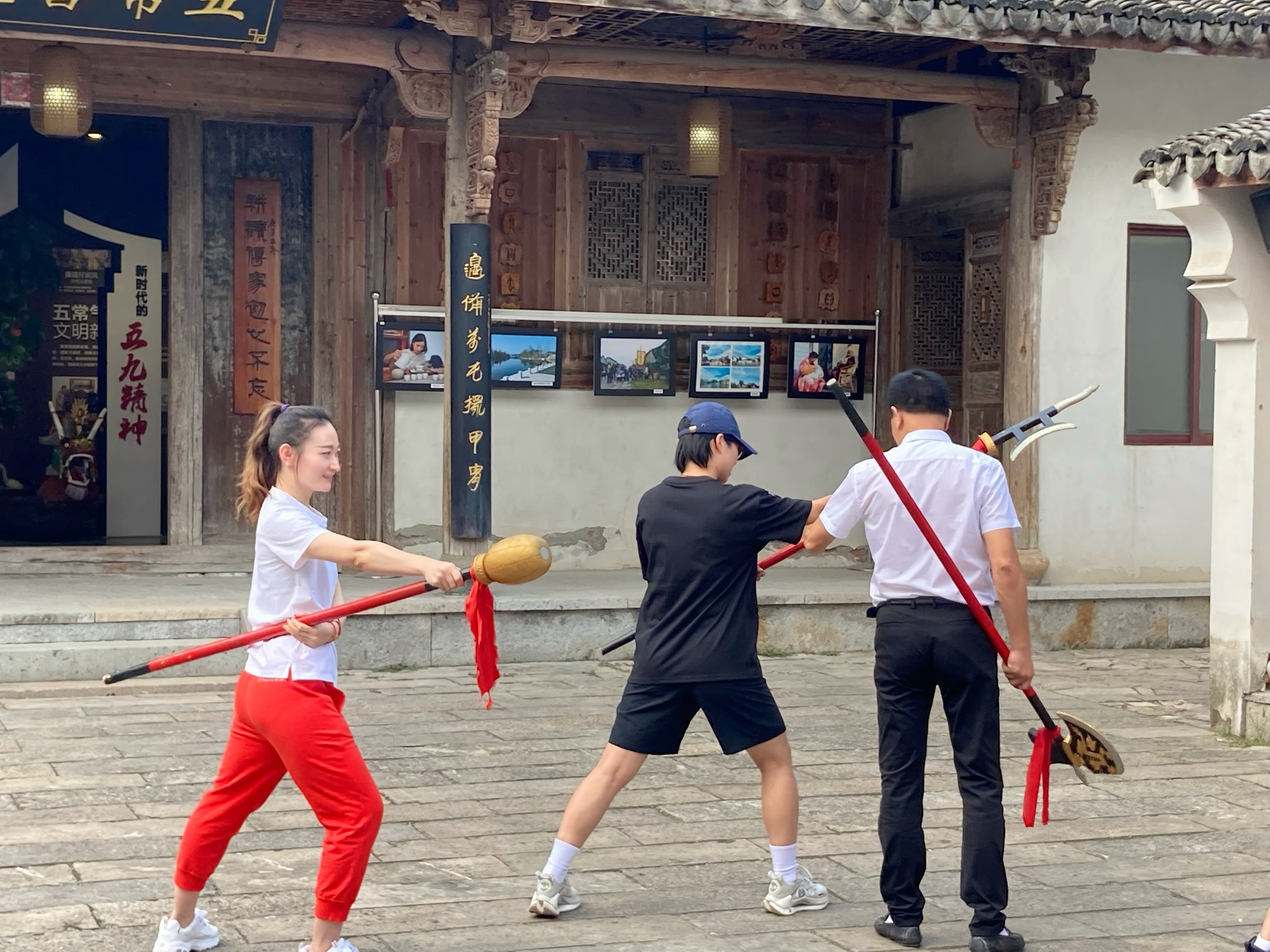 紧接着,青年团队一行在洪老师指导下,亲自学习、体验了“五常十八般武艺”套路,感受了非物质文化遗产的力量与魅力。