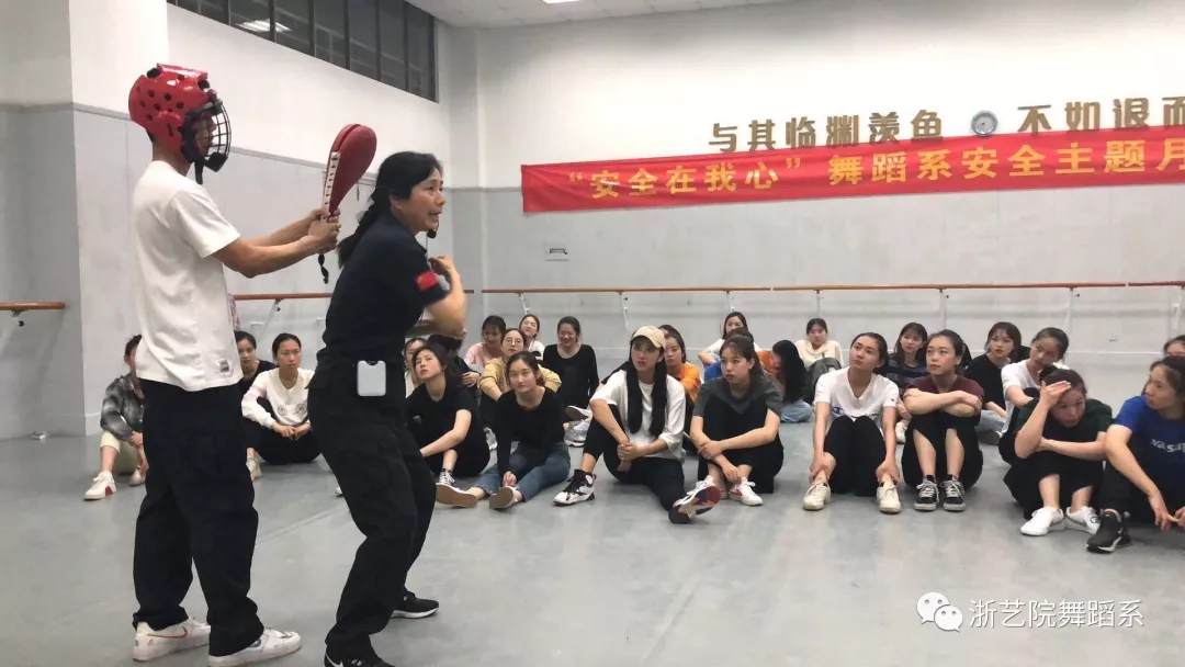 4月23日晚,舞蹈系有幸邀请到浙江警察学院沈素娟特级教官给我们上了一堂女子防身术课程,沈素娟是武英级运动员,武英级是中国武术运动员中的最高等级,功夫巨星李连杰就是这个级别。