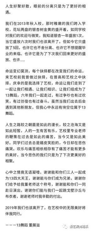 六年…2190天…52560个小时…或许,时间并没有这些数据看起来这么漫长;或许,真如老师所说的,六年一眨眼就过去了。即便,每次压软度,老师数数都特别慢,但,我依旧还是相信他们说的时间飞快。毕竟这六年我们从爬行到行走再到奔跑,最后到飞翔的过程总还是历历在目,可以说老师是我们成长的陪伴者与见证者!