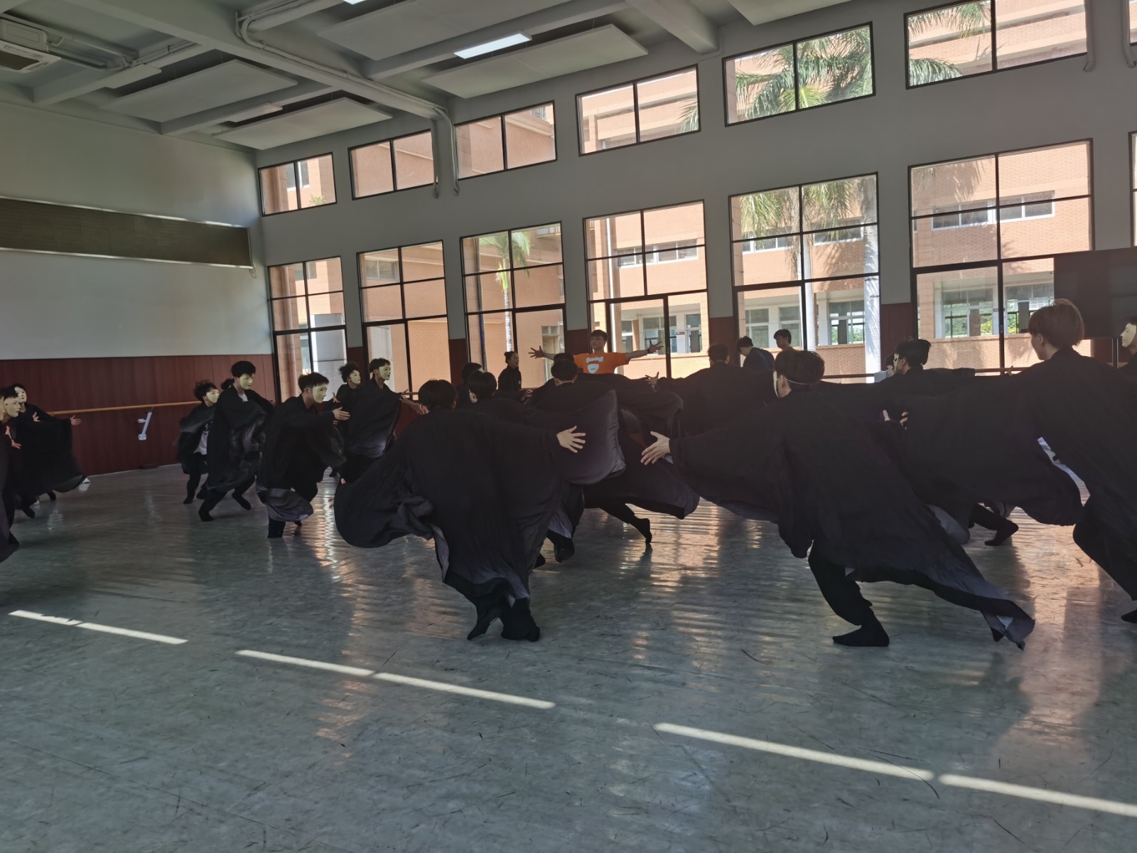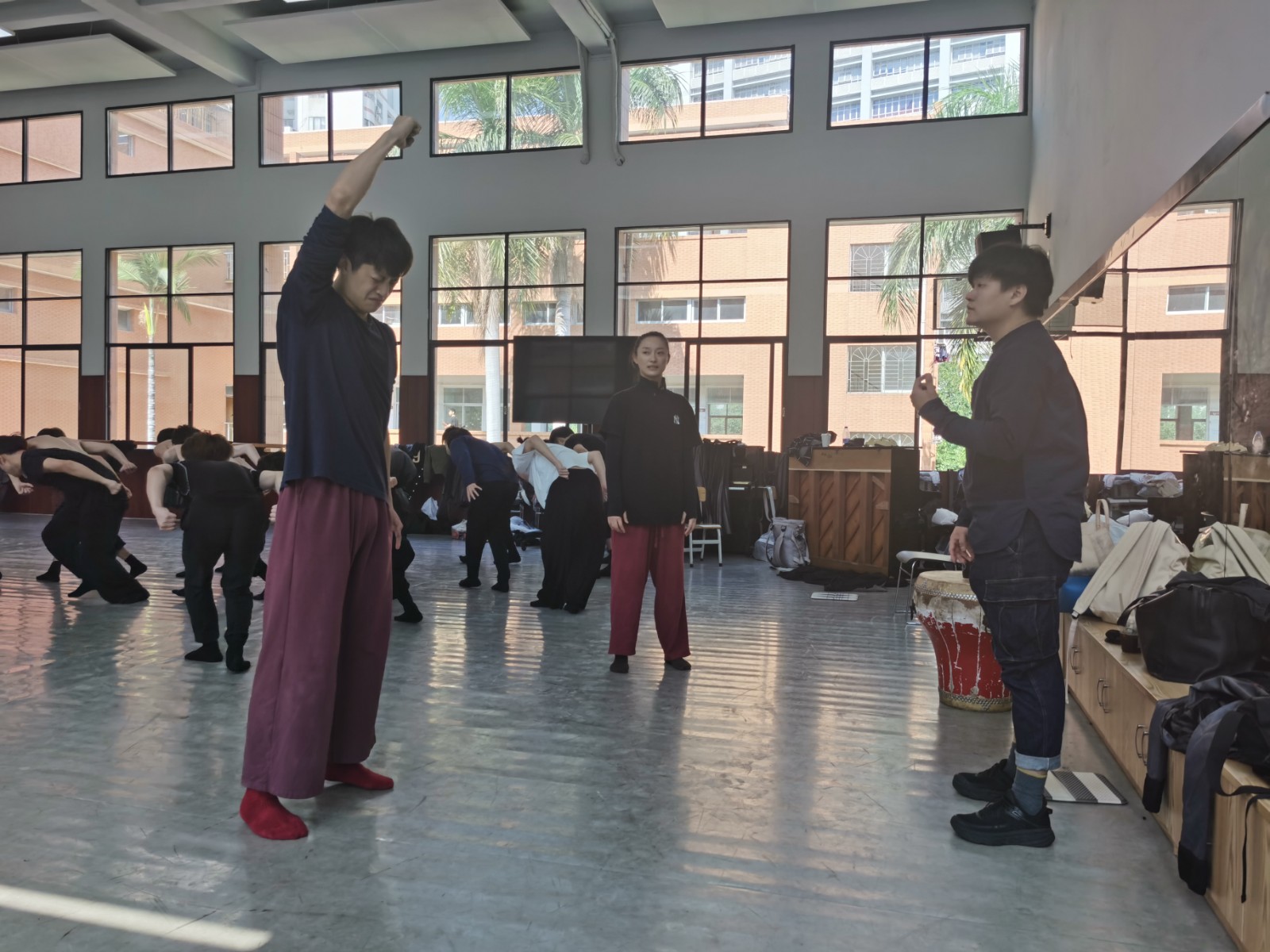 舞蹈系师生在广东舞蹈戏剧职业学院排练厅
