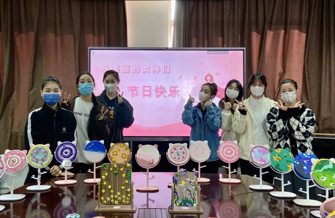 为了这一天,在舞蹈学院团总支学生会的组织下,舞蹈学院的同学们个个心灵手巧,在周末课余时间,亲手用奶油胶DI等材料制作了一面面独一无二的精致化妆镜,准备在节日当天送给这一位位独一无二的美丽女神!