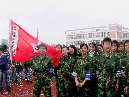 随着浙江省教育厅副厅长蒋胜祥宣布开幕,田径场上礼炮连发、欢声雷动,2006浙江滨江高教园区学生公寓文化节正式拉开帷幕。随即,“寻找身边的榜样”知荣辱摄影展的开展仪式和“历史的丰碑——大学生重温长征路”主题定向比赛举行。其中,主题定向比赛由身着迷彩服和军服的来自浙江中医药大学、浙江商业职业技术学院等六所院校的120名同学组成,分6队进行竞赛。田径场内设了代表红军长征中湘江战役、遵义会议、强渡乌江、四渡赤水、巧渡金沙江等重大事件的11个赛点,设立翻越训练板、匍匐过障碍等项目。虽然晨风袭来阵阵寒意,经过几天雨水浸润的草地湿滑难行,同学们依然英姿飒爽,个个奋勇争先,体现出高度的毅力、团队精神和集体荣誉感。“寻找身边的榜样”知荣辱摄影展则精选了六所院校学生90多幅摄影作品,围绕“荣辱”的主题,以不同角度体现了当代大学生心中的荣辱观。这些作品或以青年志愿者、社区服务为主题,或以环卫工人为摄影对象,以强烈的视觉冲击力和时代气息记录着发生在我们身边的“荣辱”事迹。其中,《一路不扫、何以扫天下》、《节约用水、迫在眉睫》等照片引起了同学们的强烈共鸣。当天下午,在滨江园区立志园、立德园、立业园三所学生公寓食堂,文化节还举行了美食大赛和美食节。六所院校的学生参赛队烹饪佳肴,来自各校区的数千名学生参与其中,尽情享受学生们自己制作的美食。