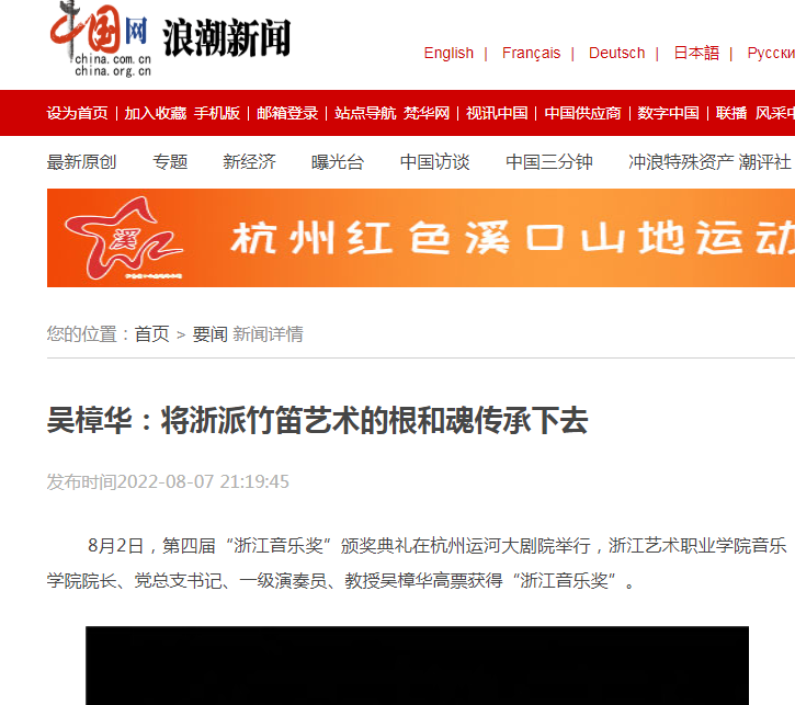 中国网浪潮新闻:吴樟华:将浙派竹笛艺术的根和魂传承下去