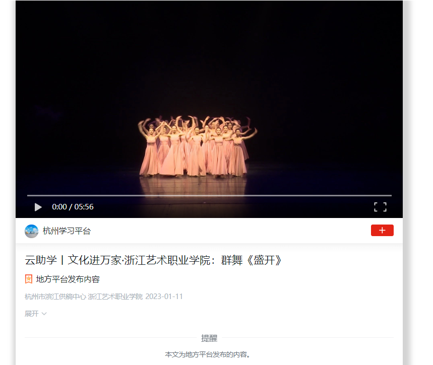 学习强国杭州平台:云助学丨文化进万家·浙江艺术职业学院:群舞《盛开》