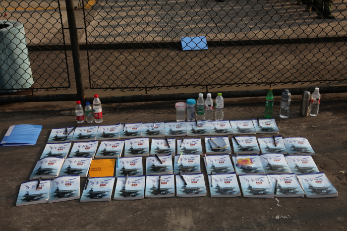 军训要严谨,瞧,军事理论的书都排的整整齐齐。
