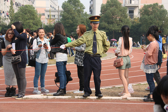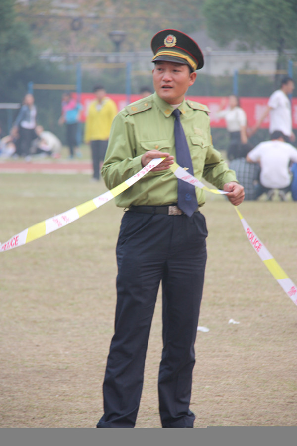 我院保卫处的经警队员们是这次运动场上一道亮丽的风景线,赛场的各个角落都能看到他们在维护秩序和保护师生安全。在运动场的入口处,在跑道的两旁,在铅球、跳高、跳远等等比赛处,也随处可见他们忙绿的身影。也许是运动场上运动员们的激情感染到了他们,站在赛道两边拉着警戒线的他们看到如此精彩的比赛后,脸上也一改从前严肃神情,也露出了灿烂的笑容。