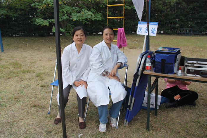 要说运动会,一定少不了他们,为受伤的运动员们进行及时治疗的校医们。身着一身白衣的他们,在今天运动会上也是异常美丽。虽然,他们只是坐在一个不起眼的角落里,但是运动场上有人受伤了,他们一定会背着医药箱最迅速到达现场给予救助,这样的工作精神值得我们所有人学习。