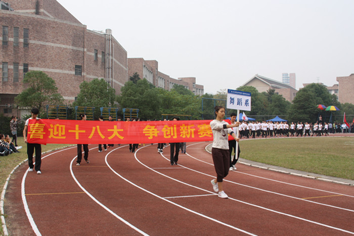 同学们青春活力的身影,老师们带队高昂的热情,本届运动会的入场队伍打出了头阵,最先吸引师生们的眼球。戏剧系、音乐系、美术系、附中、舞蹈系、影视技术系、文化管理系依次接受主席台的检阅。在激昂的音乐声中,运动会的氛围在浙艺院的操场上洋溢开来,以一种轻松大气,活跃开怀的气势在秋日的暖阳中绽放起艺院独特的芳华。