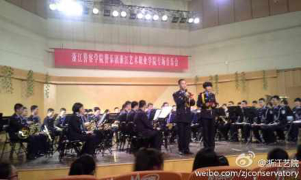 嘹亮的号角吹出警院学子为人民服务的忠诚使命,宏伟的和声代表警院学子坚定的从警信念。浙江艺术职业学院和浙江警察学院的学生共同度过了美好一夜。(编辑:金姬)