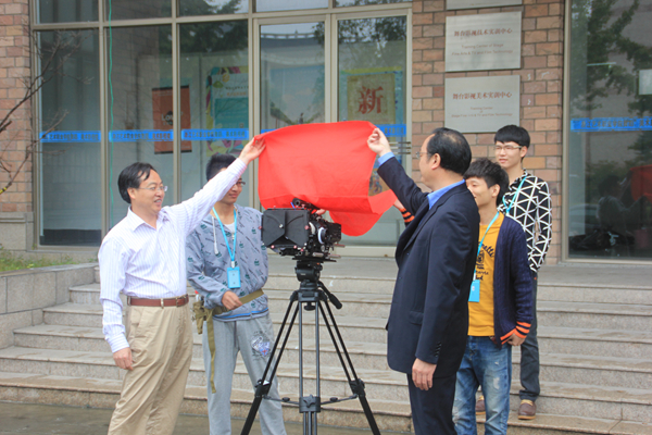 10月30日上午,由影视技术系12影视多媒体班全体同学参与制作的两部原创微电影《特别间》和《复生》,在4号楼前举行开机仪式。影视技术系副主任(主持工作)刘发奎、党总支副书记彭云波及指导教师出席开机仪式。在众人注视下,刘发奎、彭云波和12影视多媒体班的同学一齐揭开红色镜头布,宣布《特别间》和《复生》两部原创微电影正式开机。