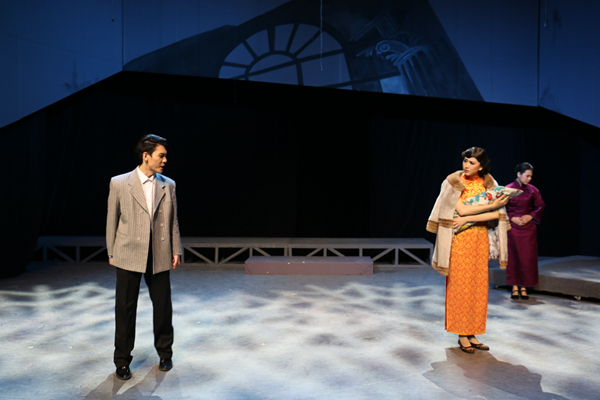 同学们凭借扎实的表演功力将阮玲玉的真实生活和舞台生活巧妙地融合在一起,将其一生交叉展现在观众面前,极大地冲击了观众的视野,挑战了人们的思维,体现了阮玲玉生活的不易。最让人眼前一亮的是戏中戏的结构、独特的穿插切换手法。阮玲玉独特的人格魅力在此幕话剧中得以充分展现,面对张四达的控告、唐文山的决绝、穆天培的幼稚,在绝路面前,她选择的依然是感恩,依然是真诚。