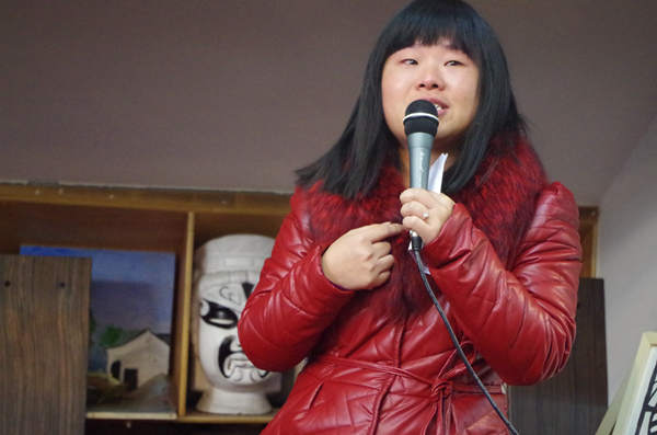 简短开幕式过后,在12非遗班同学的陪同讲解下,到访的领导、教师和来宾们饶有兴致地参观起展厅展品来,并时不时地停下脚步询问作品的细节和内涵。展出作品有油纸伞、木板年画、莲花灯、扎染布艺、皮影、彩色剪纸及12非遗班自己通过搜集整理而成的《浙江省口头文学搜集整理汇编》等。热情的师生将展厅拥挤得水泄不通,对“非遗”作品的喜爱之情溢于言表。偶有几位同学站在角落,为毕业展的成功举行和即将面临的毕业生活落下动情的眼泪。非遗教研室主任蒋曼曼作为12非遗1班班主任、12非遗两个班的专业任课老师,也压抑不住内心的情感哽咽起来。