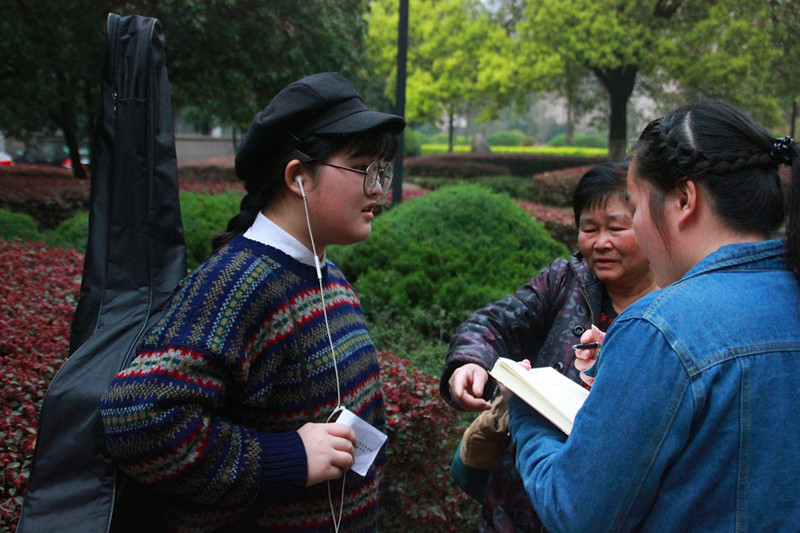 从小听着爷爷唱京剧长大的胖姑娘,酷爱音乐。弹着吉他,唱歌给更多的人听,是她一直的梦想。这次,奶奶陪她过来考试,她信心满满,她表示,一定要考出好的成绩给奶奶瞧一瞧。