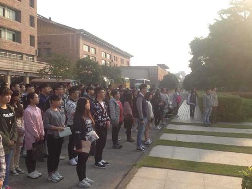 10月12日上午,文管系升旗仪式在8号楼前中心广场举行。2015级文管系全体新生和二、三年级学生代表等参加了仪式。