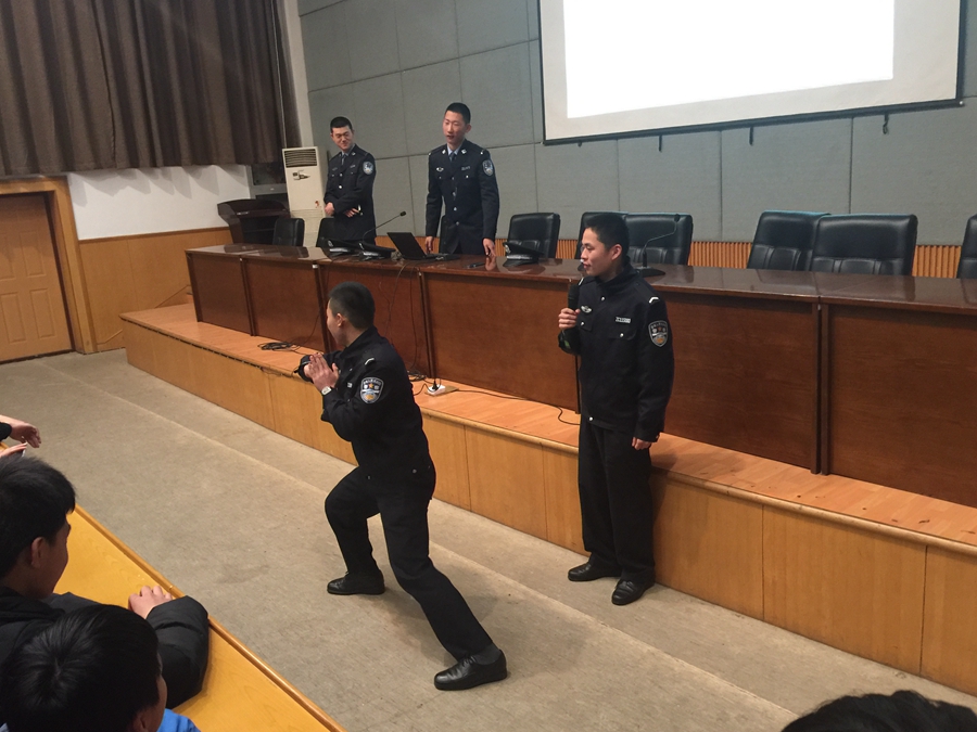 网络诈骗、信息诈骗、熟人诈骗等形形色色的诈骗时常发生在我们身边,警院学员向大家介绍了几种常见的诈骗手段、如何防范身边诈骗以及女子防身术和近身格斗术。诈骗的手段大致有七种:假冒身份,流窜作案;投其所好,引诱上钩;真实身份,虚假合同;借贷为名,虚假为实;以次充好,恶意行骗;招聘为名,设置骗局;骗取信任,寻机作案。身为在校生,校园诈骗屡见不鲜,要做到如下几点才能坚决杜绝:提高防范意识,学会自我保护;交友要谨慎,避免以感情代替理智;同学之间要相互沟通,相互帮助;服从校园管理,自觉遵守校纪校规。最后,四名学员邀请在座同学上台演示防身术、格斗术,现场气氛十分踊跃。