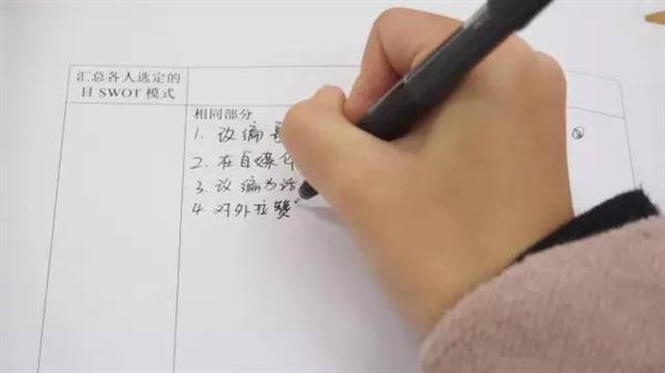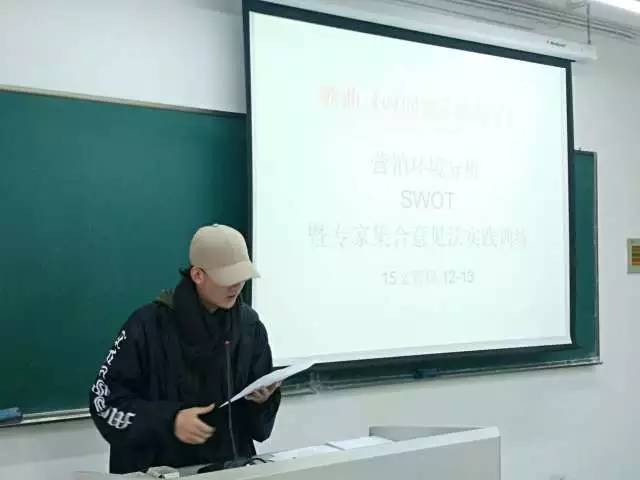12月13日,东冠教学楼里别开生面地模拟了“活动主办权竞标”现场,15文管班的同学每10人一组“建立”了4家“文化工作室”,各自通过SWOT分析法及专家集合意见法对《时间都去哪儿了》这一歌曲在浙艺校园内推广提供方案。