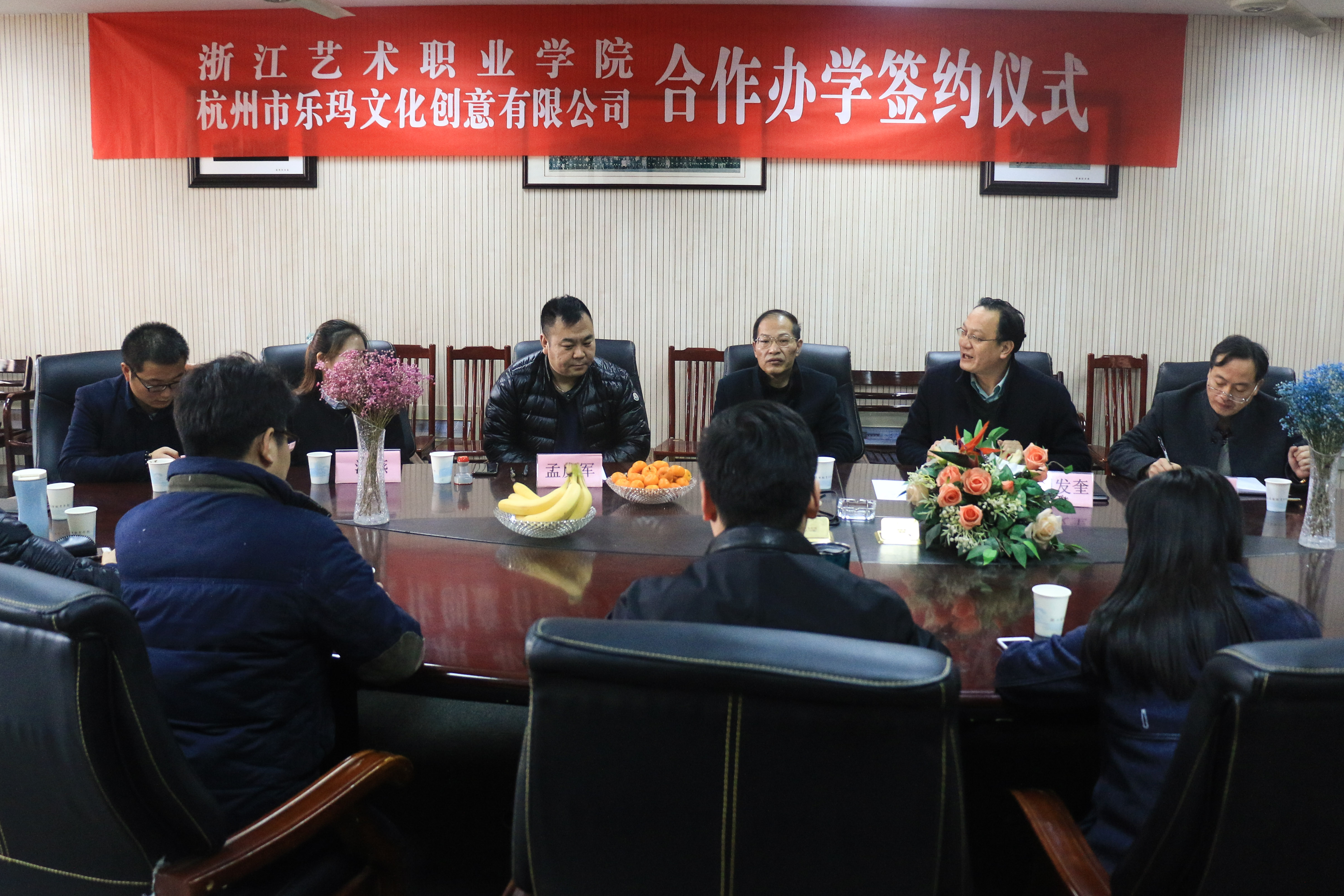 1月3日,浙江艺术职业学院与杭州市乐玛文化创意有限公司合作办学签约仪式在浙艺影视技术系会议室举行。出席本次仪式的有乐玛公司总经理孟庆军一行、浙艺党委委员、副院长章轲、浙艺影视技术系副主任(主持工作)刘发奎,系党总支副书记彭云波等。双方希望在这五年的合作中,提升专业水准,共同培养人才。