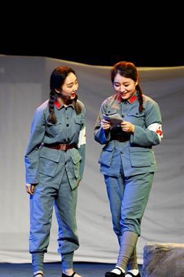 孙学增导演原创作品工作坊——江南红村采风•原创作品汇报《红色•青春》主题晚会,5月17日晚由浙江艺术职业学院戏剧系表演艺术专业学生在浙艺小剧场倾情上演。小品《双别》《七斤半面粉》《挑夫》《映山红》、情景表演《卫生队》《徐昌胜》等7个节目精彩呈现,把观众带到战火纷飞的抗战岁月,不忘初心,感人肺腑。此次演出是表演艺术专业师生们赴长兴革命老区采风后创作出的艺术成果。长兴县委宣传部副部长刘月琴、浙艺院长黄杭娟、院党委宣传教育处处长马向东、戏剧系党总支副书记李旭芳等观看演出。