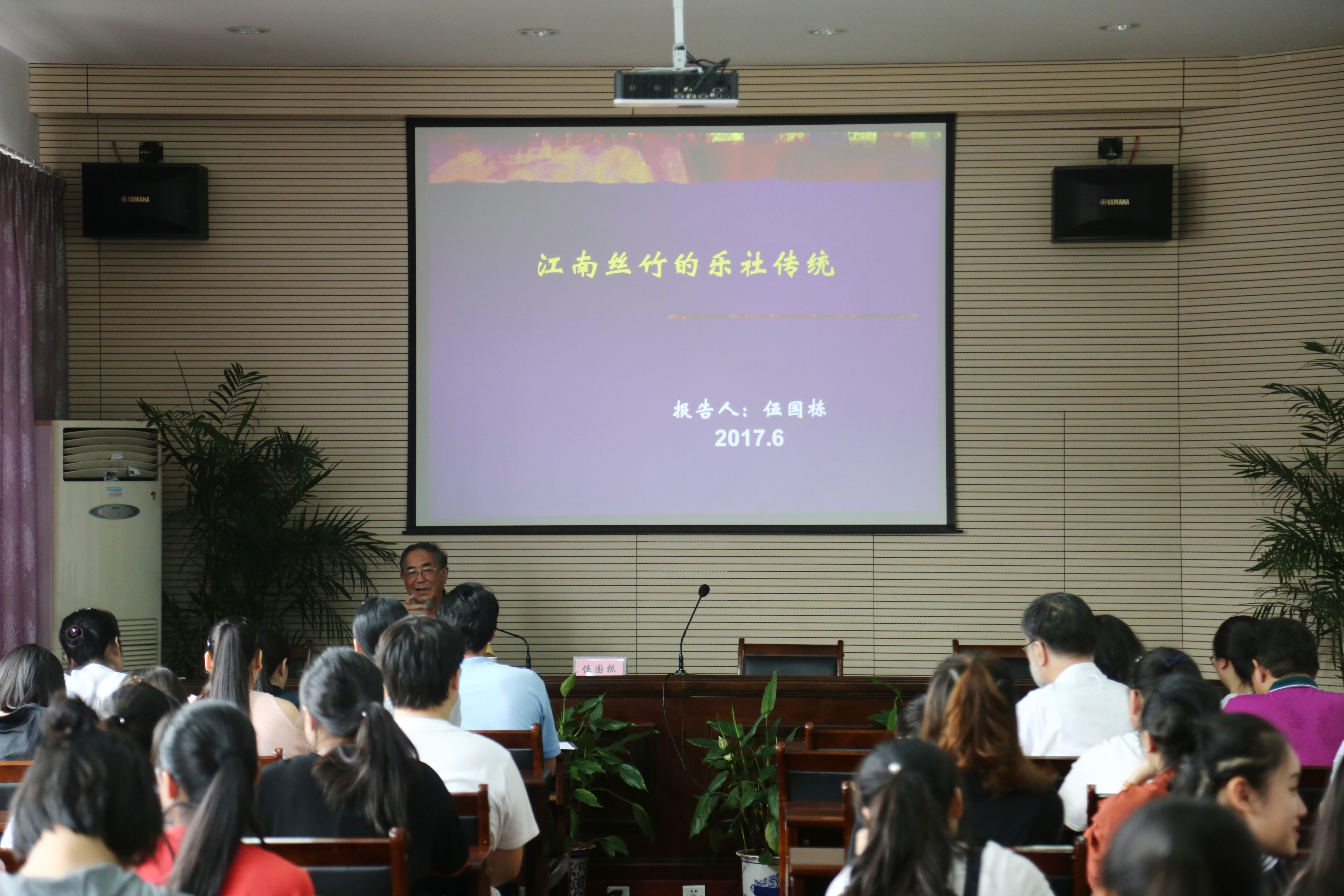6月20日上午,由伍国栋主讲《江南丝竹的乐社传统》。伍国栋研究员是我国著名民族音乐学家,中国艺术研究院研究员、南京艺术学院特聘教授,中央音乐学院、浙江师范大学客座教授,博士生导师。作为我国民族音乐学的学科带头人,他对学科及理论队伍建设一直起着学界公认的领军作用。他在学术上重视音乐学与人类学、社会学、民族学、民俗学等人文学科的结合,强调田野调查和社会音乐活动实践,积累有较丰富的实地考察经验和较深刻的社会音乐实践感受。研究领域涉及民族音乐学(音乐人类学)、中国传统音乐、中国少数民族音乐等多方面。代表著作有:《白族音乐志》、《中国民间音乐》、《中国民族音乐》、《中国少数民族音乐》、《江南丝竹:乐种形态与乐种文化的综合研究》等。