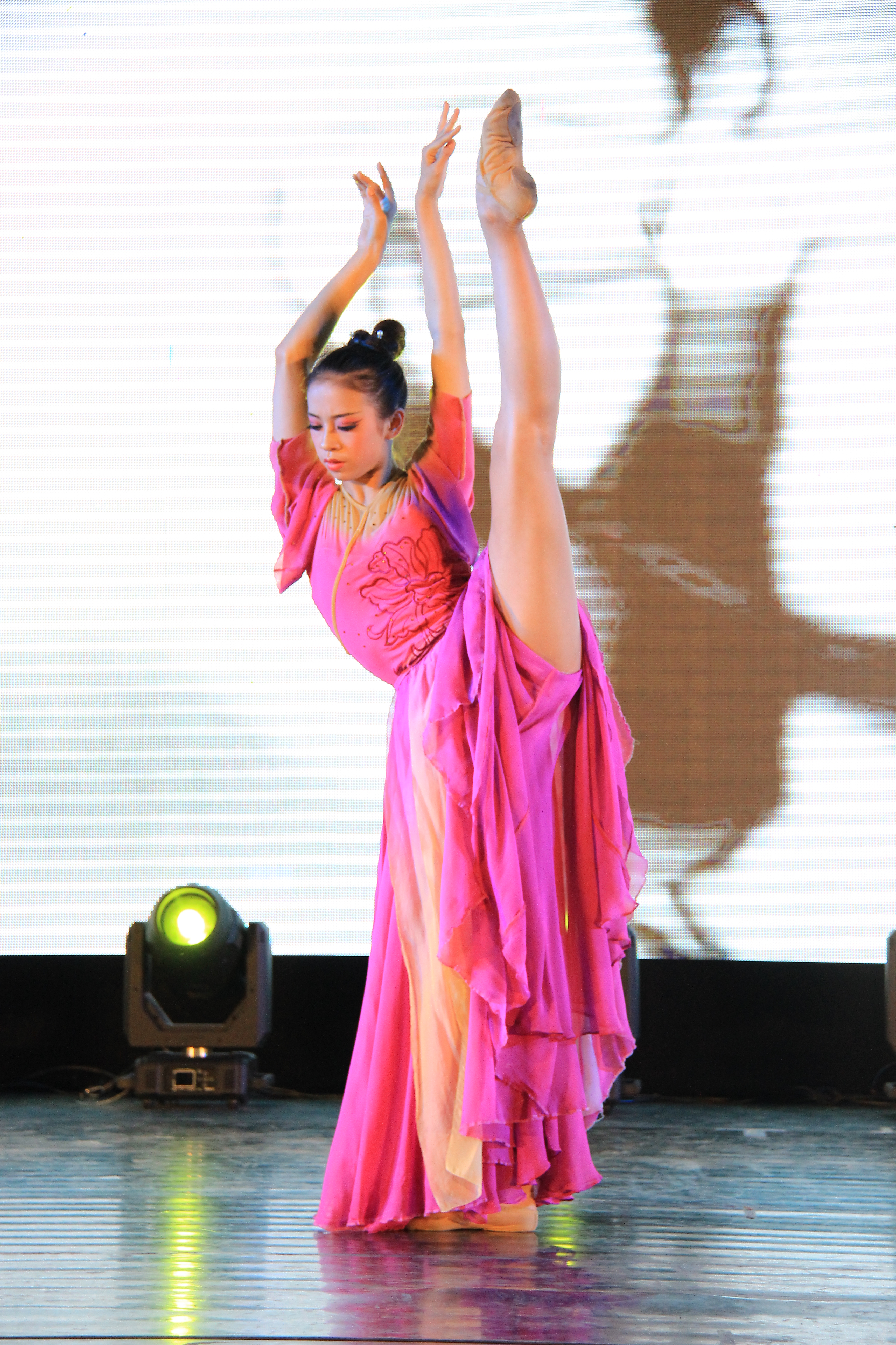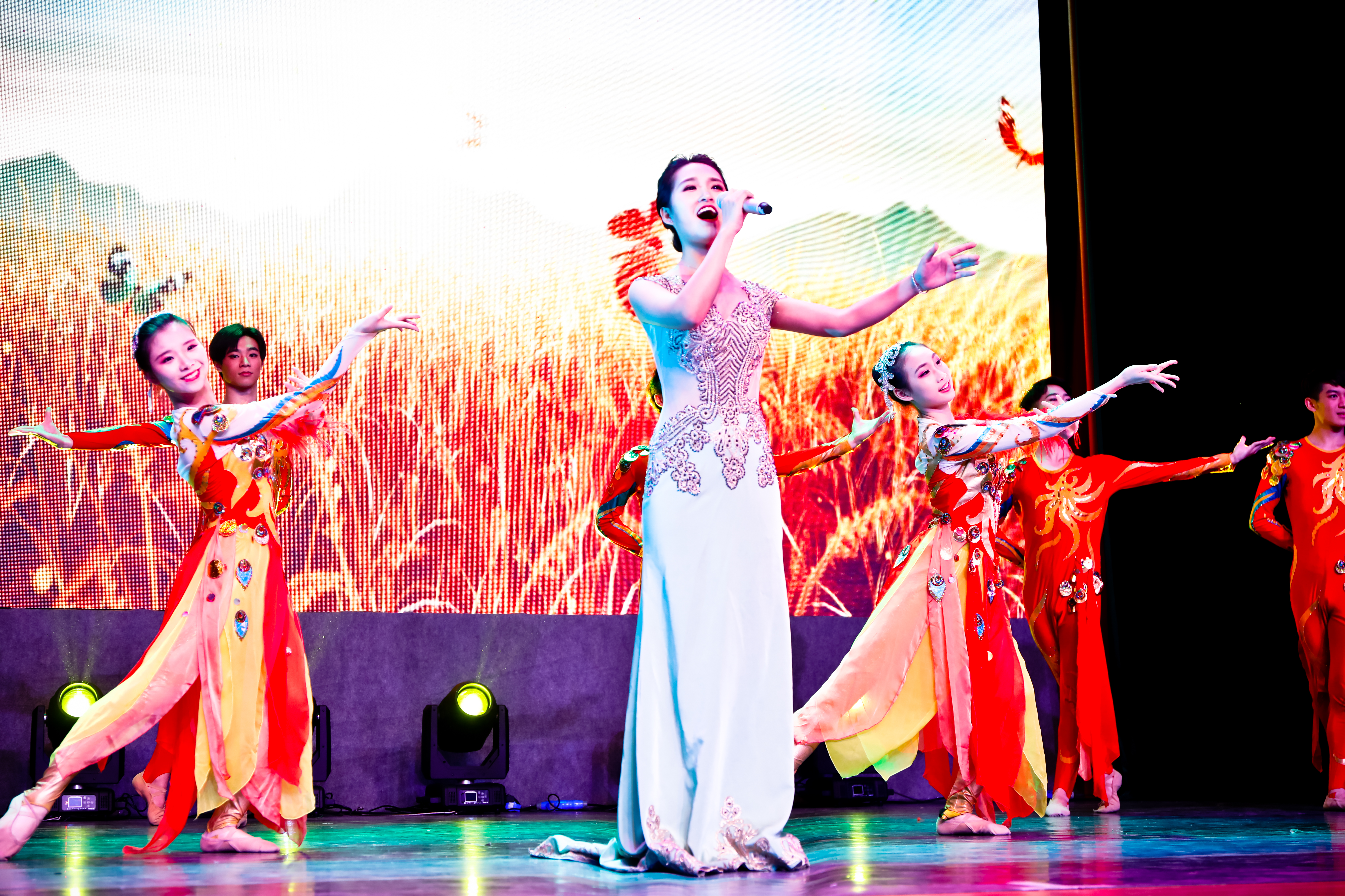 “高雅艺术进校园”专场演出在各个学校的剧院举行。晚会由浙艺学生葛媛、黄丹丹担任主持。歌伴舞《阳光路上》拉开了演出的序幕,明朗优美的旋律唱出了今日中国人民普遍的喜悦心声,将现场的气氛带动起来。独舞《且看行云》动作舒缓唯美,演员举手投足间尽显孤傲、自在的境界,将“天上有行云,人在行云里”、“流水便随春远,行云终与谁同”、“本来无一物,何处惹尘埃”三句诗完美地展现了出来。越剧表演《为妻是千年白蛇峨眉修》中的白娘子如泣如诉,如怨如慕,传颂千年的爱情故事在演员柔美的唱腔中徐徐展现。板胡独奏《春城节日》的动听旋律立马就俘虏观众们的耳朵,一把具有300年历史的乐器显尽了无限风采。男子芭蕾变奏《关不住的女儿》、女子芭蕾变奏《奥贝尔女变奏》与女声独唱《人间西湖》更像是东西方的激烈碰撞,你来我往、意犹未尽……最后一曲红旗颂震撼心灵、大气磅礴,将演出再次推向高潮。整台节目内容丰富,尽显师生精湛的专业水准,美轮美奂的表演与观众真诚的呼应构成一道靓丽风景。