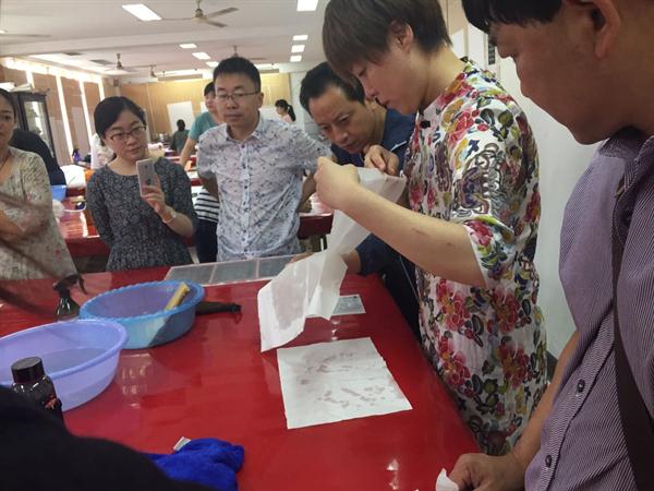 本次培训由文化部非遗司、浙江省文化厅主办,浙江艺术职业学院承办,浙艺文化管理系承担具体教学任务,来自吉林、河北、福建、广东、安徽、江西、江苏、贵州、湖南、浙江等省份的共45名学员参加了本期培训。本次培训班是本年度的第一期中国非遗传承人群培训班,我院领导高度重视,几次召开专题研讨会。培训班严格按照文化部、教育部、文化厅要求及联合国教科文组织提出的“正宗、杰出、创新、适销”的八字宣言,在总结前几期经验基础上,认真编写本期培训计划和课程安排。邀请胡玉清、汪自强、阎静书、郑王义、王玉田、马国庆等国内一流专家、大师、学者等授课,他们有的深谙敦煌古籍,有的是娴熟利落的装裱大师,有的是可以让书卷“重生”的指尖舞者,还有将传统平面拓技术体系提升为立体拓表现体系的拓艺专家等等,他们给学员们带来一场场精彩纷呈的课堂及实践教学。培训班安排的实践操作内容有:书画装裱、古籍修复、仿古籍装帧形式制作、传拓技艺等国家非遗项目。为弥补在民间师徒传授过程中知识文化积累的不足、专业理论的不完善,在培训过程中采用理论与实践相结合,并以参观交流考察为专业拓展部分,同时采用集中授课与小组研讨相结合、名家授课与案例教学相结合的方式。