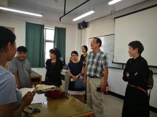 蓝玲谈及学院的各方面优势,建议我们利用好自己的品牌优势,多方位开展舞台服装设计培训,专业学术交流及校外演出服装项目设计承接等工作,也表示一定会积极支持我们的教学工作。