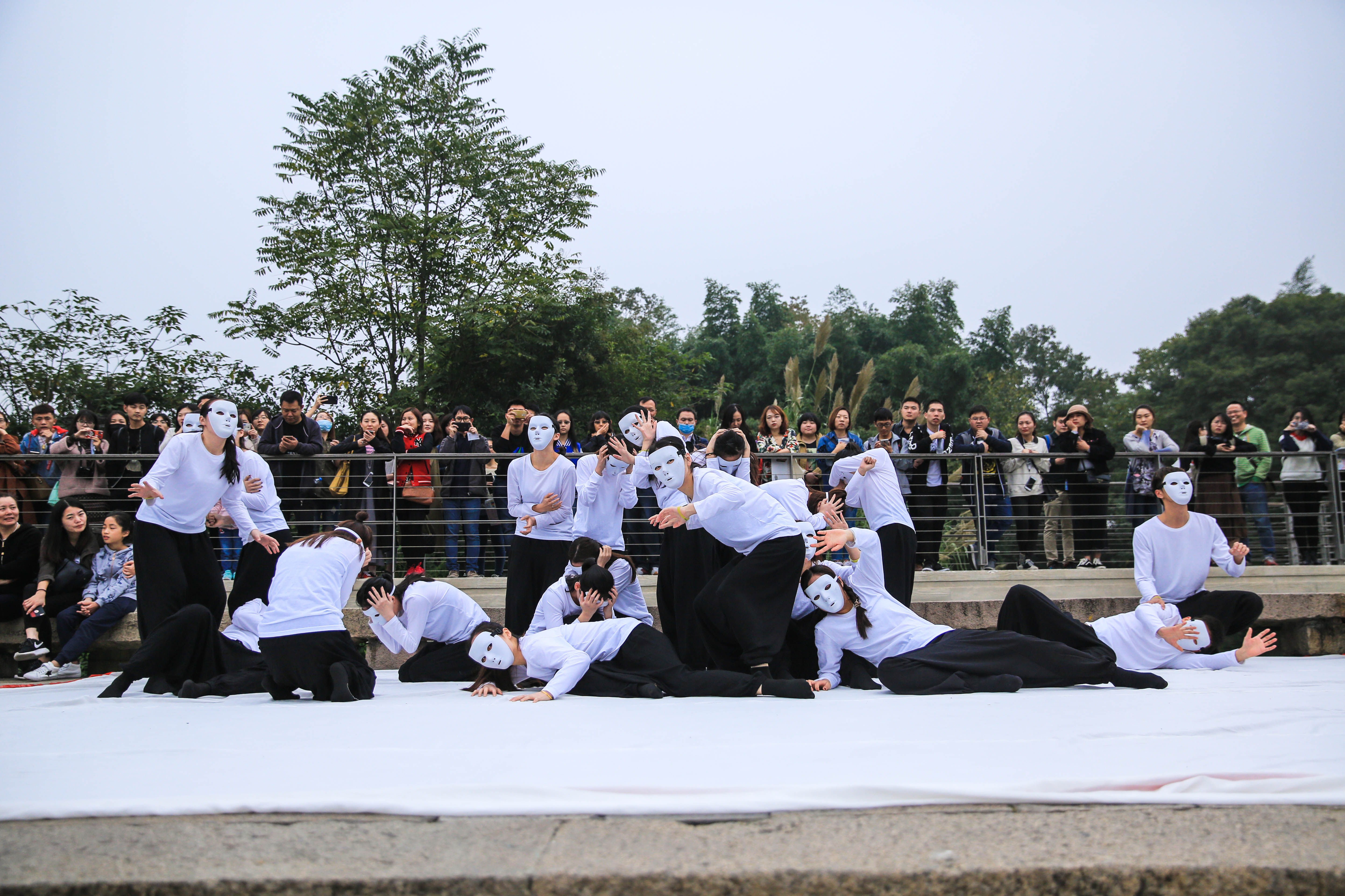 有观众说,很后悔自己在生活中表现出的冷漠,不应该跟爱人、家人吵架,看了演出很有感触,今后要更关注自己的生活,用真诚的心对待周边的人;有的家长带着孩子观看演出,全程给孩子解读情节和内容;还有观众特地询问演员来自哪里,夸同学们的演出非常打动人心,还有外国剧迷给同学们竖起大拇指,观众们的鼓励与肯定让同学们倍受鼓舞。每场演出之后,荆芳给大家进行点评和修改,同学们迅速改正问题、调整状态,使得演出一场比一场娴熟、自如。最后一场的嘉年华演出在木心美术馆的水台上进行,台居水中,三面临湖,仅一桥连通陆地,上百名观众站在周边的桥上、长堤上看完了演出。尽管有些拥挤,但观者、演员都沉醉其中,大家眼中浸着泪水,不觉身在何处。