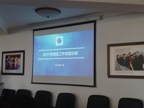 会上招生就业办公室从录取情况、招生计划及执行情况、录取数据分析、报到数据分析以及招生工作中存在的问题等方面对2017年学校招生工作进行了回顾和总结,同时提出了2018年招生工作的设想和思路。