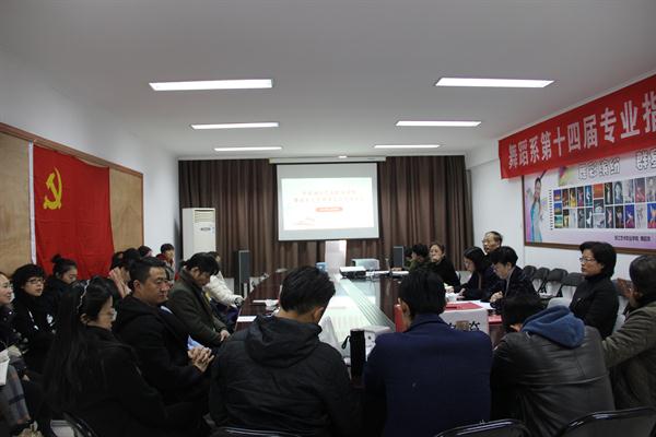 章轲指出,党的十九大报告中提到,要加强基层党组织建设,要确保党的政策、方针能够顺利坚决地贯彻执行,基层党组织要突出政治功能、宣传党的主张、团结人民群众、树立坚强堡垒。他希望舞蹈系党总支要继续坚持党政联席会、三会一课等制度,带领教师、学生支部发挥好教育、监督党员,组织、服务群众的功能,新一届总支委员能发扬舞蹈系传统,继续不忘初心、牢记使命,工作迈上新台阶。