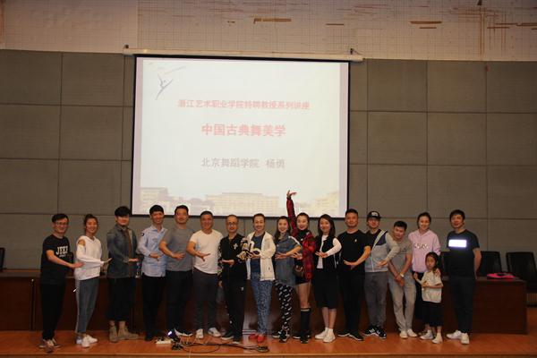 杨勇,北京舞蹈学院副教授,中国艺术职业教育古典舞专业委员会副主任,北京开放大学影视艺术学院客座教授,全国高职高专院校职业技能大赛专家,多次获得“桃李杯”舞蹈比赛“园丁奖”、教学成果奖等。本次讲座是浙江艺术职业学院特聘教授系列讲座之一,舞蹈系全体教师、全体高职班以及部分五年一贯制、中专学生聆听了讲座。