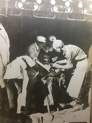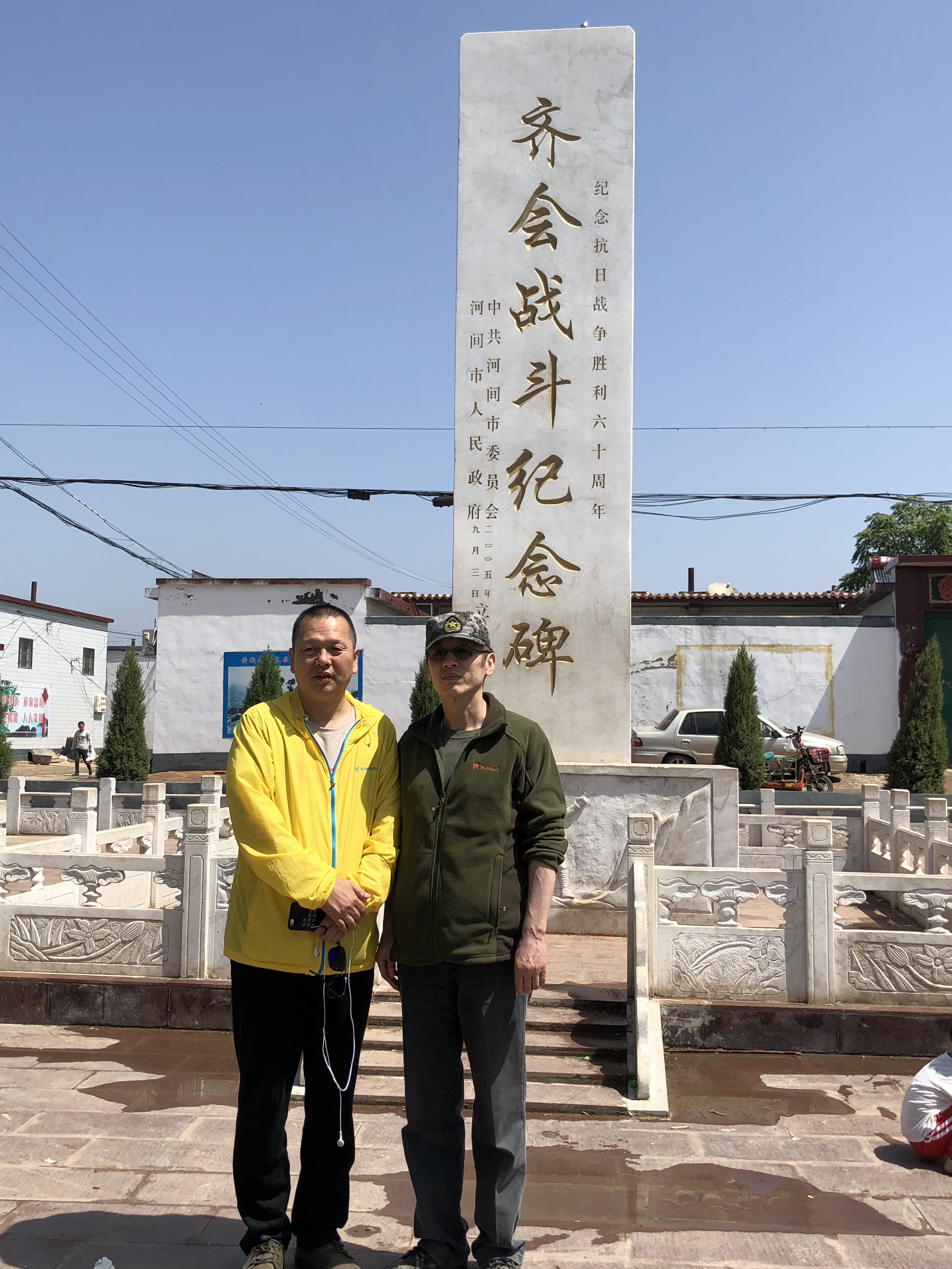 22日,剧组主创人员一行循着历史足迹,先来到先辈们曾经浴血奋战过的战场之一、抗日战争时期齐会战役旧址、今河北沧州河间县参观考察。1939年4月,八路军第120师在贺龙元帅的带领下,和晋察冀军区所属冀中军区部队一部一起,在这里对进犯日军实施外线速决进攻战。齐会战役是抗日战争中的一场重要战役,这场战役沉重打击了日方斗志,将华北平原的众多百姓日军铁蹄下解救了出来。79年后的今天再次站在这片热土上,依然能够感受到革命先辈们当年奋不顾身的热血激情。在开国将军杨秀山之子杨晓哲先生及当地历史讲解员孙正开老人的陪同带领下,《走过硝烟》的主创们先后走访了齐会村、屯庄村、找子营村,参观了齐会战役纪念馆、白求恩博物馆、战斗旧址等一系列遗址古迹,并采访了村子中曾经见证过那场战斗的老人和当地专门研究齐会战役的学者。