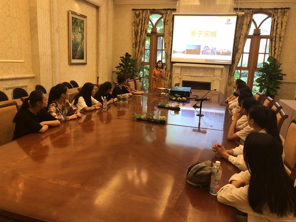 作为现代学徒制下“双主体育人”的企业主体方,此次参观学习活动得到宋城集团的重视,宋城集团人力资源部副总经理王玲飞全程参与本次活动,企业导师洪莹带着同学们参观了宋城第一世界大酒店、宋城杭州乐园,从企业发展、下属产业、招聘要求、用人理念、员工后续发展等方面介绍了宋城集团,并与同学们一起观看了《宋城千古情》、宋城大篷车歌舞团《寻之旅》等宣传视频。