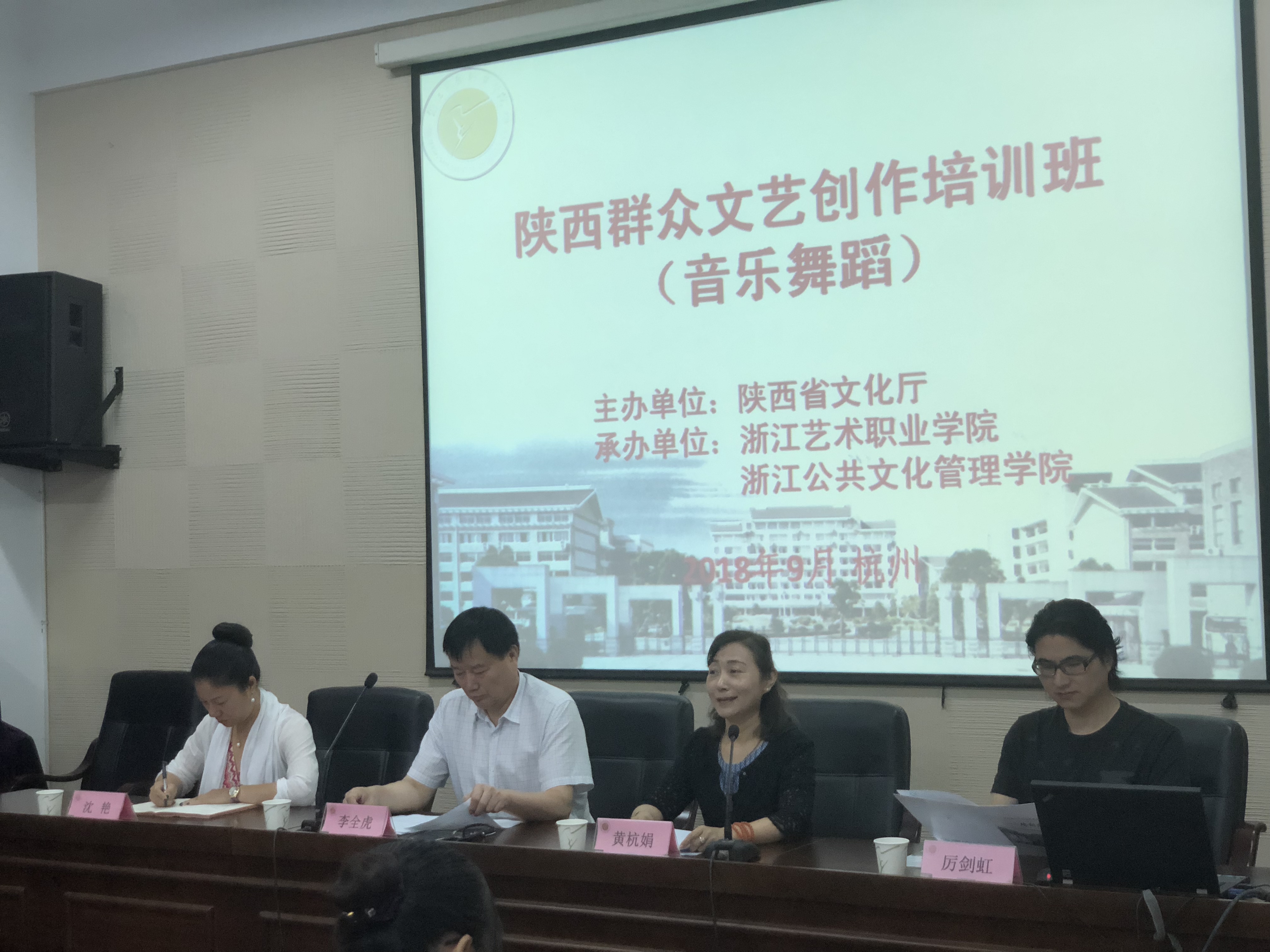 9月11日上午,陕西群众文艺创作培训班(音乐舞蹈)开班仪式在浙江艺术职业学院(浙江公共文化管理学院)举行。浙江艺术职业学院院长黄杭娟、陕西省文化厅副厅长李全虎等出席开班仪式。