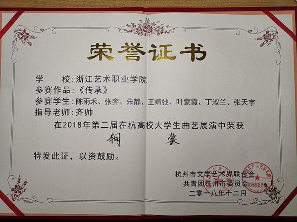 文化管理系学子喜获第二届在杭高校大学生曲艺展演金奖、铜奖