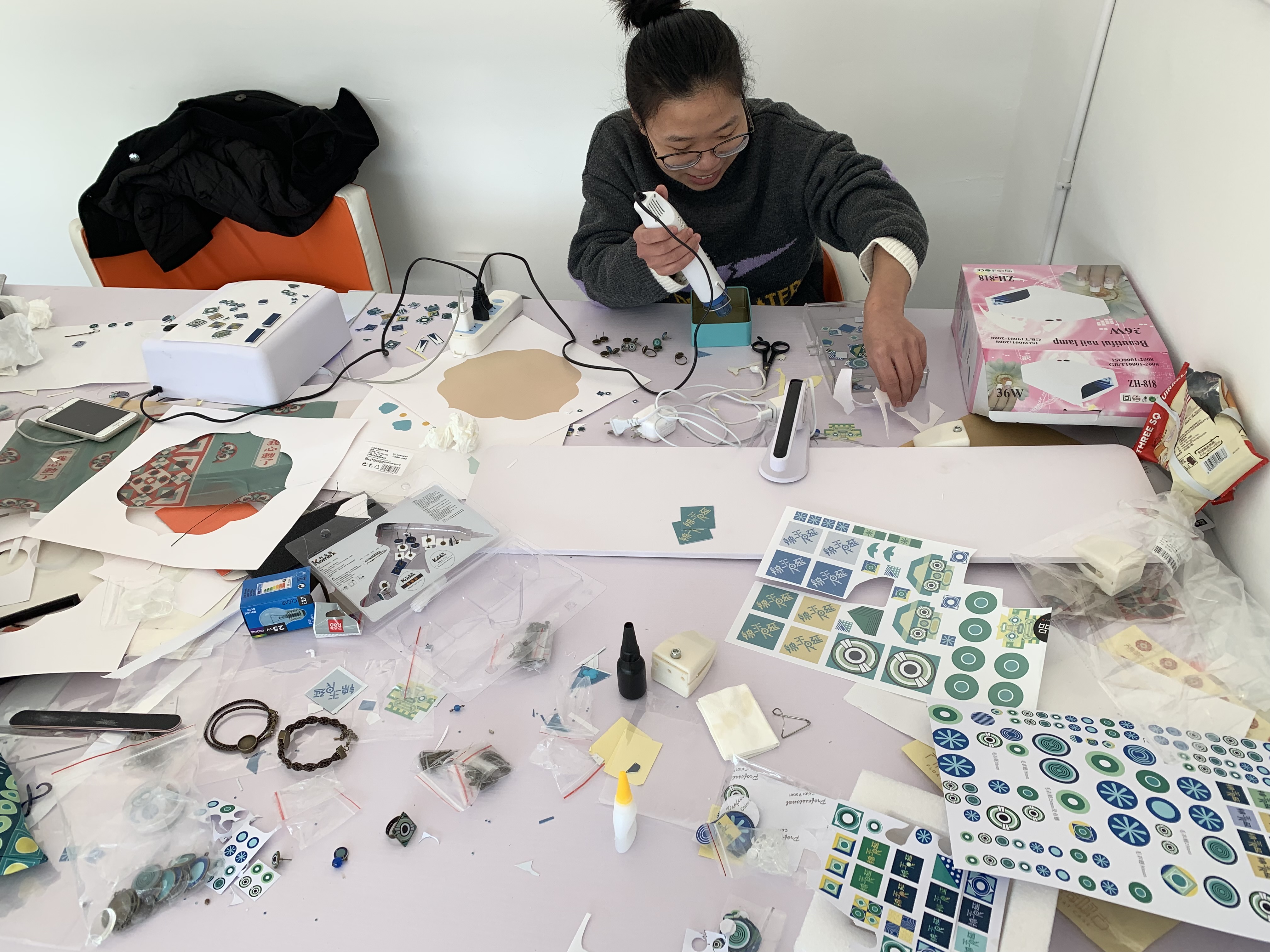 市集上的产品出自美术系16级广告设计、动漫设计、环艺设计、服装设计等专业学生之手。同学们张罗着各自的“摊儿”,摆放好亲手设计的各种小玩意儿,实实在在做了一回生意人。