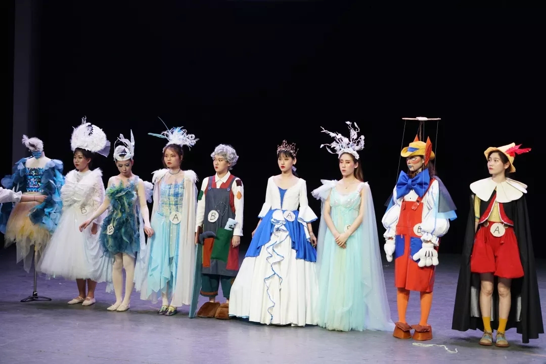 参与本次实践的同学来自17级、18级服装班,以抽签的形式分为18个小组,每个小组的设计任务是一个固定人物角色和群演角色,以《木偶奇遇记》(5个角色)、《白蛇传》(2个角色)、《爱丽丝梦游仙境》(3个角色)展开A、B组方案创意服装设计。