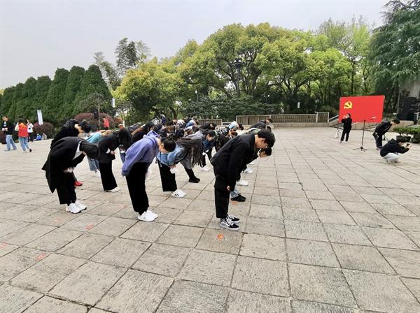 师生们仰望着纪念碑,怀着崇敬的心情绕墓一圈,并把亲手制作的小白花献给先烈们。并一同参观了浙江革命烈士馆展馆,了解先烈们的英勇事迹,感悟当今来之不易的美好生活。