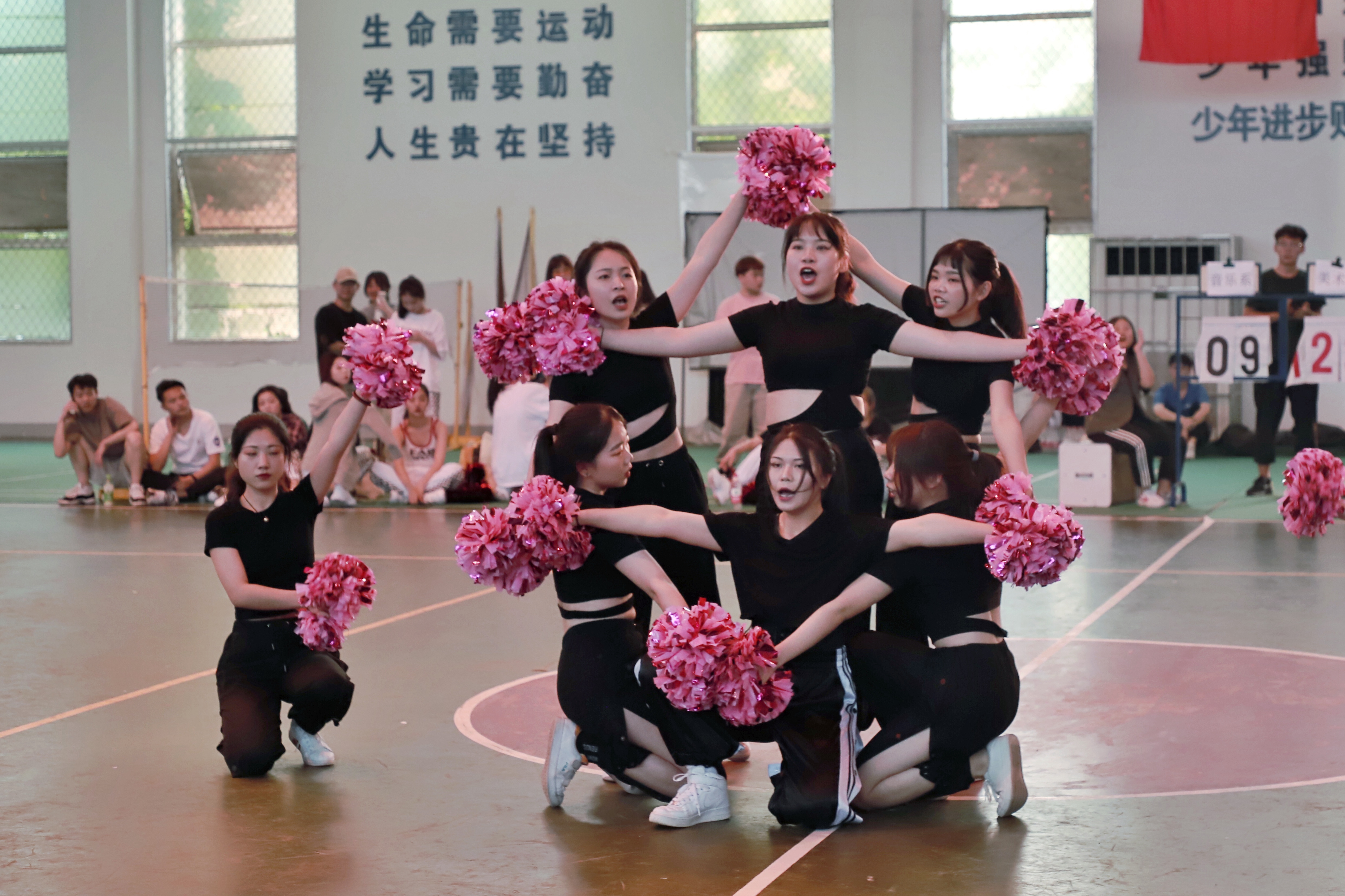 记者:大家都来自不同的班级,时间上面的安排可能会存在问题,同时加上啦啦操训练也非常辛苦,那专业不是舞蹈的你们都是怎么去克服的呢?