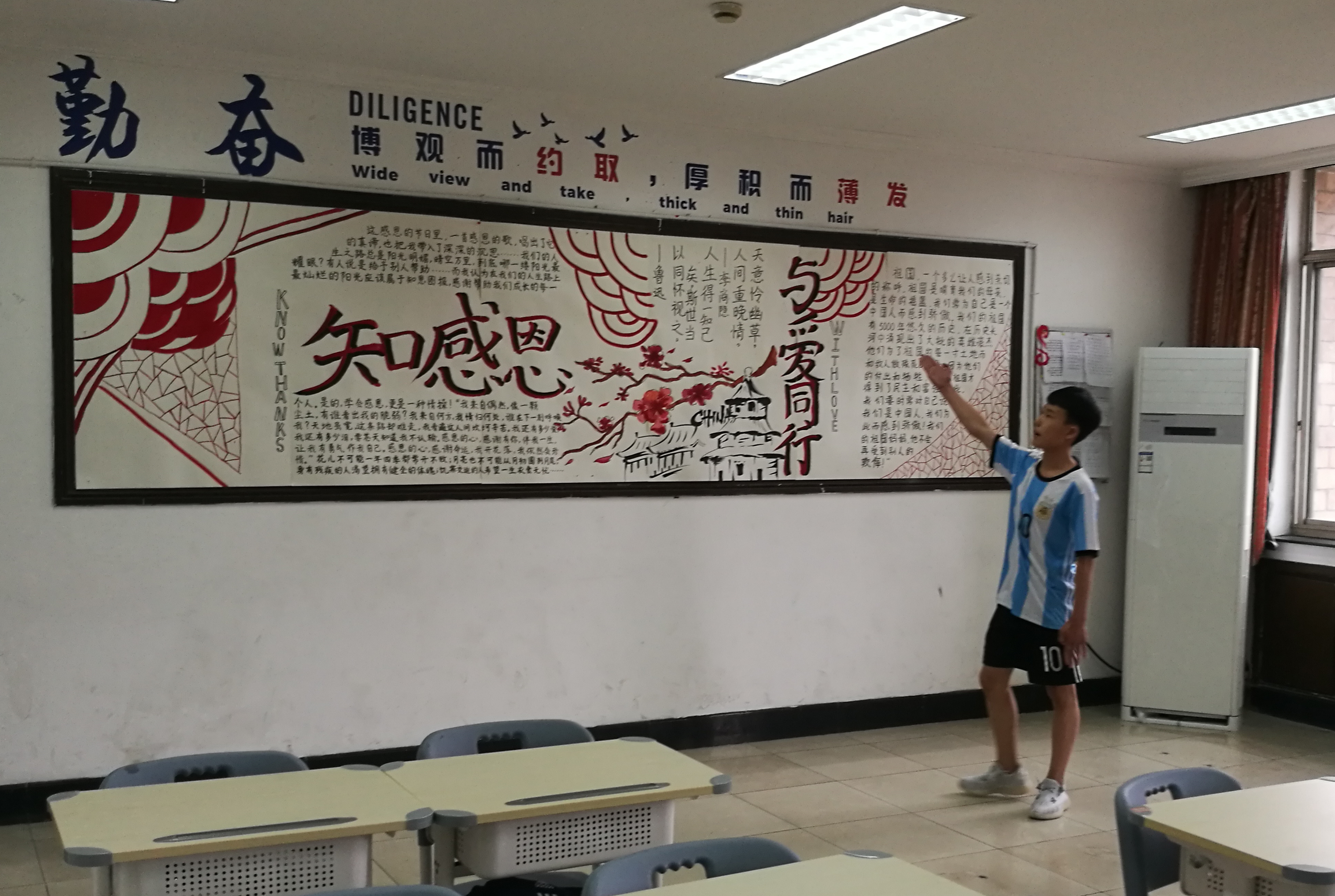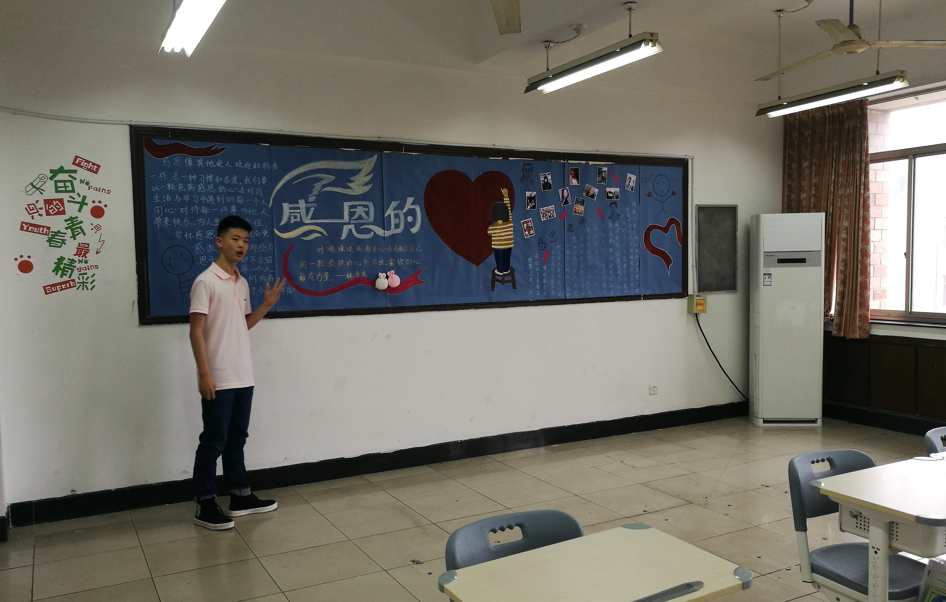 教室文化是校园文化的重要组成部分,为了更好发挥学校教室环境的育人功能,营造优良的学习环境,丰富学生的课余生活,增强班级凝聚力和展示学生良好的精神面貌,5月13日中午,学院附中开展了“学会感恩,与爱同行”为主题的教室美化大赛活动。我校基础教学部、戏剧系、音乐系、舞蹈系等系部书记和系部辅导员,附中教务科、附中学生科相关人员共同参与了本次比赛的全过程,经过激烈角逐,共有6个班级获得奖项。17中国舞班获得一等奖,18音乐班、18越剧(3+4)班获得二等奖,15中国舞班、16音乐班和17音乐班获得三等奖。