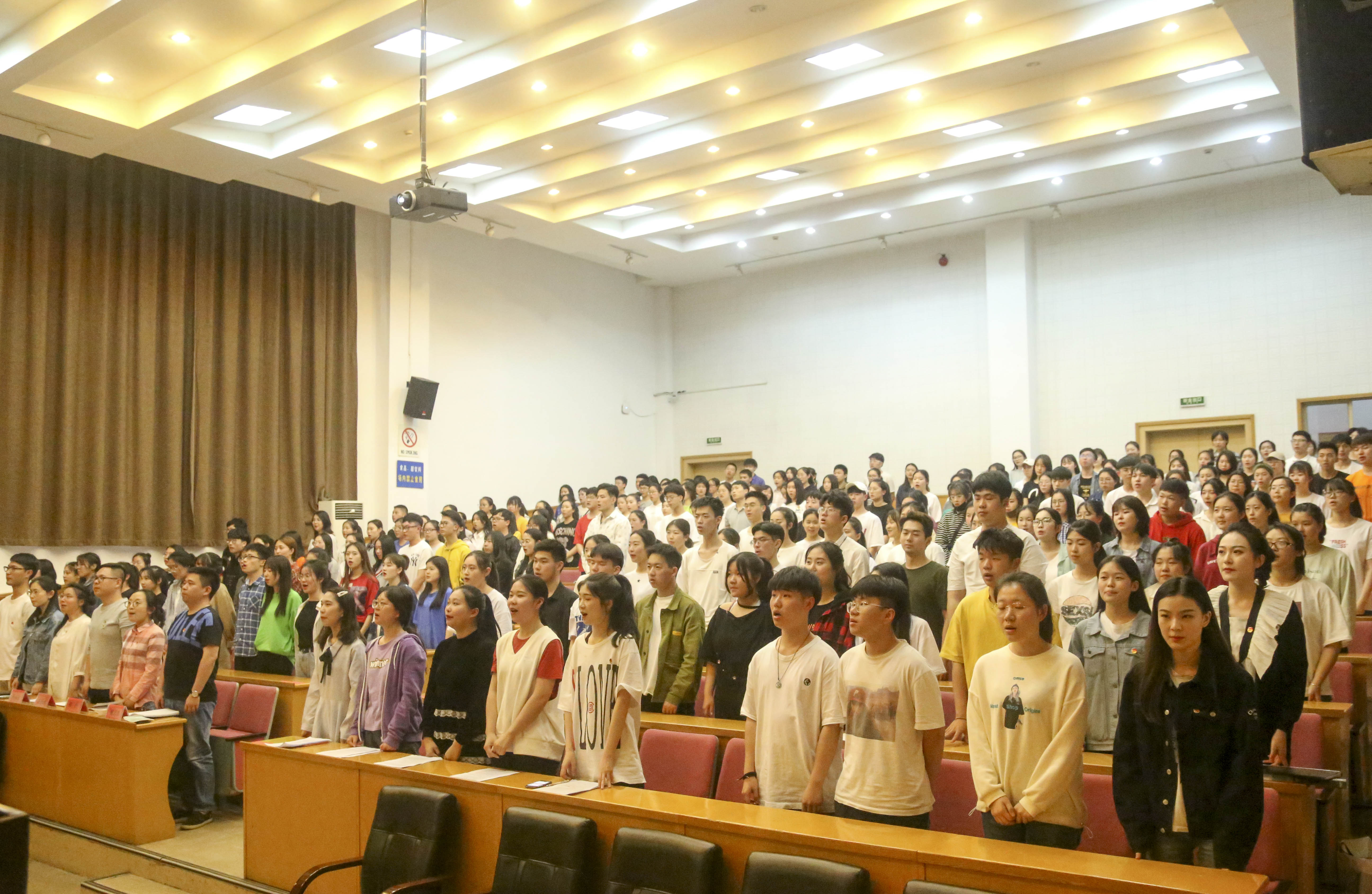 百年青春心向党,矢志建功新时代。5月5日,浙江艺术职业学院音乐系在学校图信中心报告厅举行纪念五四运动一百周年“青春心向党 建功新时代”主题团日活动。校团委书记郑吟、音乐系党总支专职副书记谢志勇、全体辅导员、团员代表、入党积极分子、党校学员以及全体团干部等近两百人参加。音乐系团总支书记主持团日活动。在庄严的国歌声中,团日活动拉开序幕。