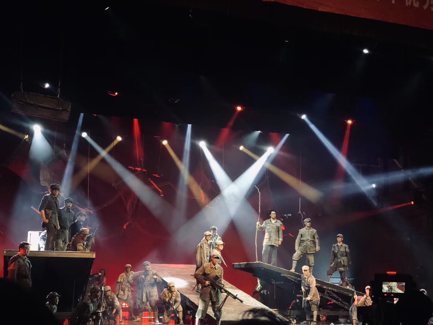我印象最深的是剧中的一小段台词“生是红军人,死是红军鬼!别倒下,走!打仗去!”这部戏,宏大制作,气势磅礴,剧情悲壮、表演张扬。剧中看到许多毕业了的师哥师姐们的优秀表演,这激励着我们在专业的学习上需更加努力,向师哥师姐们看齐。