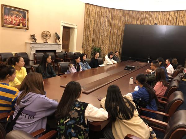 座谈会上,宋城千古情副团长阙梦野充分肯定了同学们的表现,认为宋城班的同学除了有较高的专业素养和艺术能力外,还特别吃苦耐劳,勤奋好学,对工作认真负责,适应能力超出预想。马笑迎对宋城集团在同学们的食宿安排和专业实习上给予的精心照顾表示感谢,希望在实习阶段进一步深化校企合作,为学生的成长成才创造更好的条件。马笑迎也希望同学们在实习中继续保持良好的精神状态,把所学的专业知识与教学实践结合起来,珍惜实习机会,虚心请教,多看、多做、多想、多总结,在实践中收获成长,圆满地完成实习任务。刘梦伟一再叮嘱同学们在实习过程中注意安全,按时与家长保持联系,把实习中收获的成绩和遇到的烦心事及时与老师分享,时刻不忘自己是浙艺学子,积极为浙艺的良好形象增光添彩。
