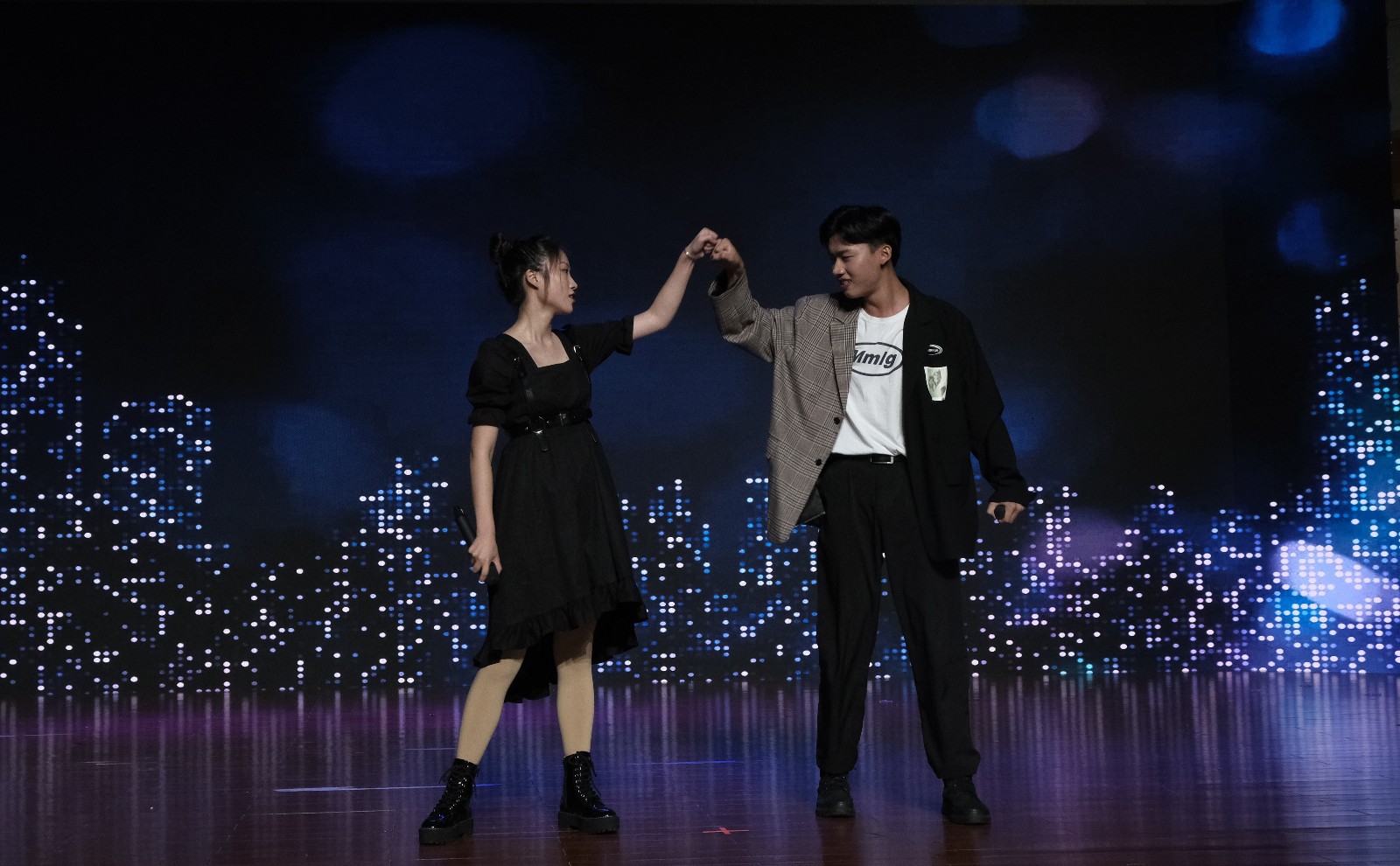 在迎新晚会上,19定向2班胡田歌献上了她在2020年浙江省大学生艺术节“校园十佳歌手”晋级决赛作品《蓝色爱琴海》;19定向与20文创专业的洪静雨、吴临筱、季虹辰、吐玛力斯·穆明江等人表演了舞蹈组合《月之花语+知否知否+铃铛舞》,三支民族舞风格不同的舞蹈激发起浓浓的民族热情与爱国情怀;19、20级学生陈靓靓、郑智健、姜裕欣等人带来了流行歌曲串烧《光年之外之热爱+b-box+迷蝶香+爱的华尔兹》,用声音展现了他们的热情,用热情绽放了他们的青春。尤其是程博的B-box表演,场下掌声雷动; 18、19级学生程琳、夏齐贇、周义颖、王婕丽等人带来的流行舞《flyer》一出场就引起场下欢呼,光彩夺目;20级定向专业俞田聪、钟文韬、杨颖等人朗诵了原创作品《文管一家人》,讲述了入校报到以来的浙艺故事和文管故事。
