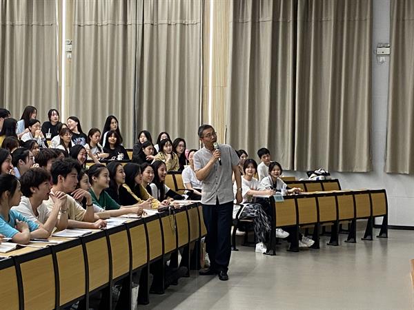 褚老师通过热身活动“你来评评分”,调动同学们的积极性。针对《爱人始于爱己,爱世发于爱人》和《兼爱人生》两篇论述文,同学们各抒己见,想法不一,整场讲座的“干货”由此开启。
