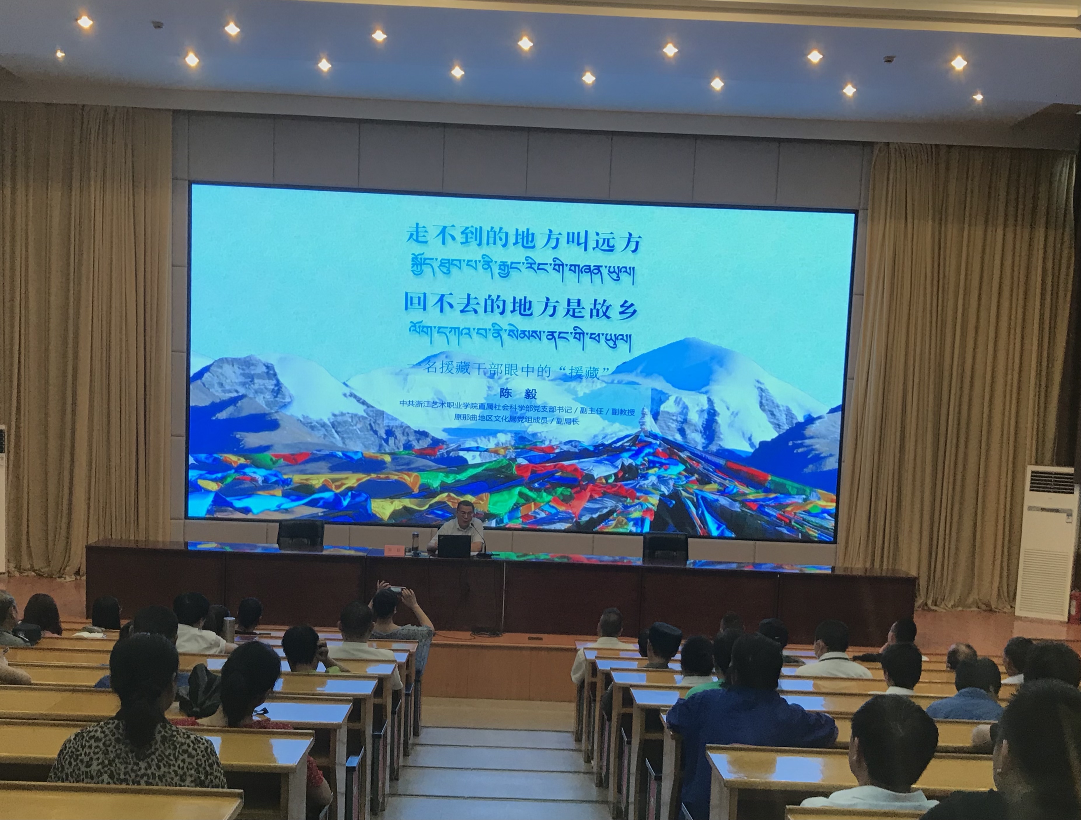 会议特邀社会科学部党支部书记、副主任陈毅为后勤公司员工上了《一名援藏干部眼中的“援藏”》主题党课。他结合自身经历分享了援藏心得、传递援藏精神。讲座中,陈毅介绍了西藏的基本概况,详细阐释了不同时期中国共产党对西藏发展的战略方针,通过人民解放军十八军艰苦奋斗的事迹展现了从“老西藏精神”到“两路精神”再到新时代的“援藏精神”。习总书记曾说在雪域高原最稀缺的是氧气,最宝贵的是精神。援藏的舍小家为大家、舍小我成大我、不计个人得失的精神在工作中具有深远的指导意义。