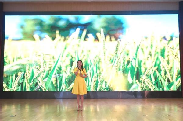 青年教师沈贝贝带来的独唱《希望的田野上》,稳健的台风结合上专业的唱腔,引得台下的观众们拍掌作和,她悠扬的歌声中带着喜悦与高亢,将一代人有一代人的努力与理想在希望中唱响。