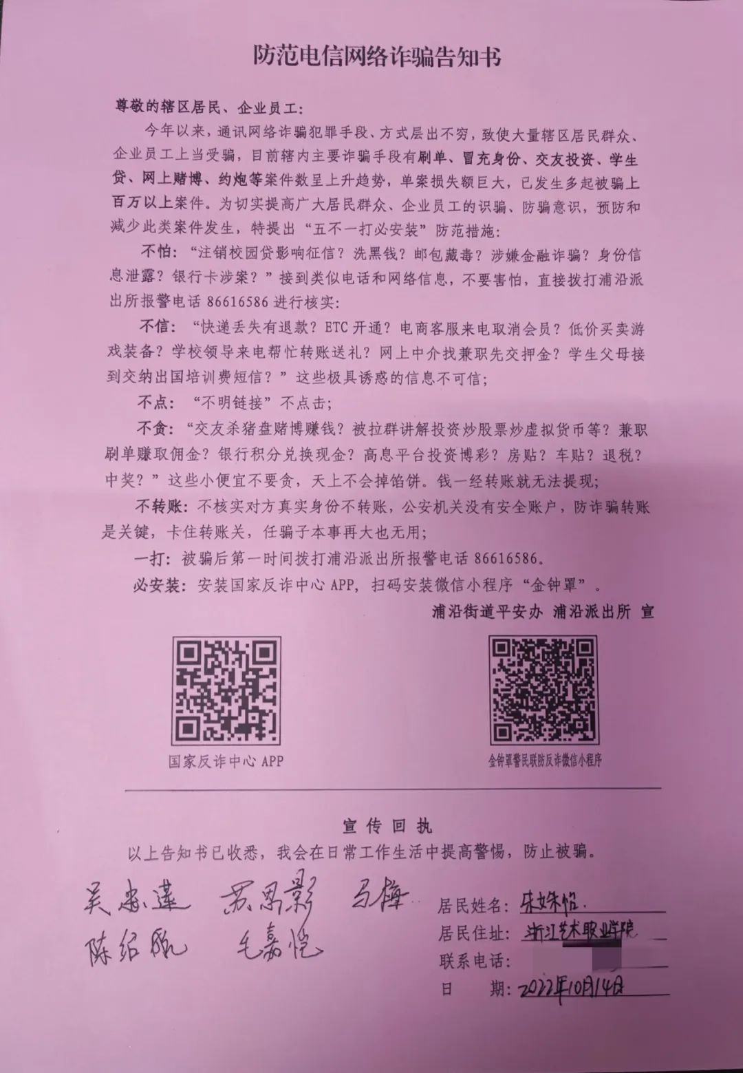 签署《告知书》,安装反诈软件