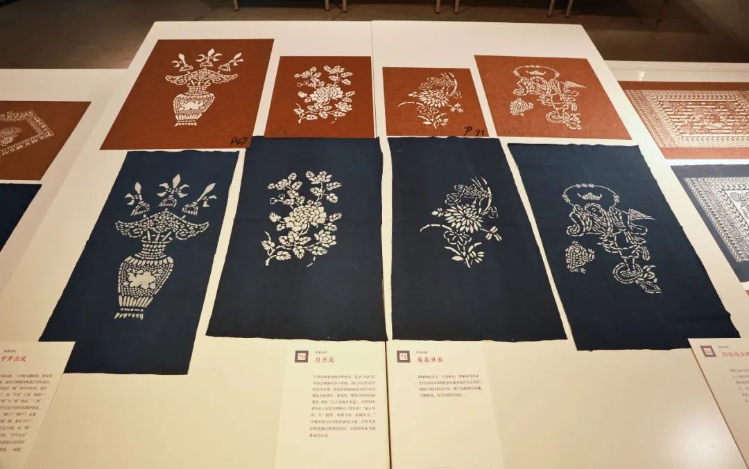 “美在民间——桐乡蓝印花布的历史及创作”展以桐乡蓝印花布的历史发展演进为脉络,分成“民族图案:林汉杰的‘蓝印田野’”“走向非遗:蓝印花布的近现代发展”“新‘丰同裕’:哀警卫的继承与探索”三大模块,比较全面地展现了桐乡蓝印花布在历史浪潮中自我发展,自我更新的过程与风貌。