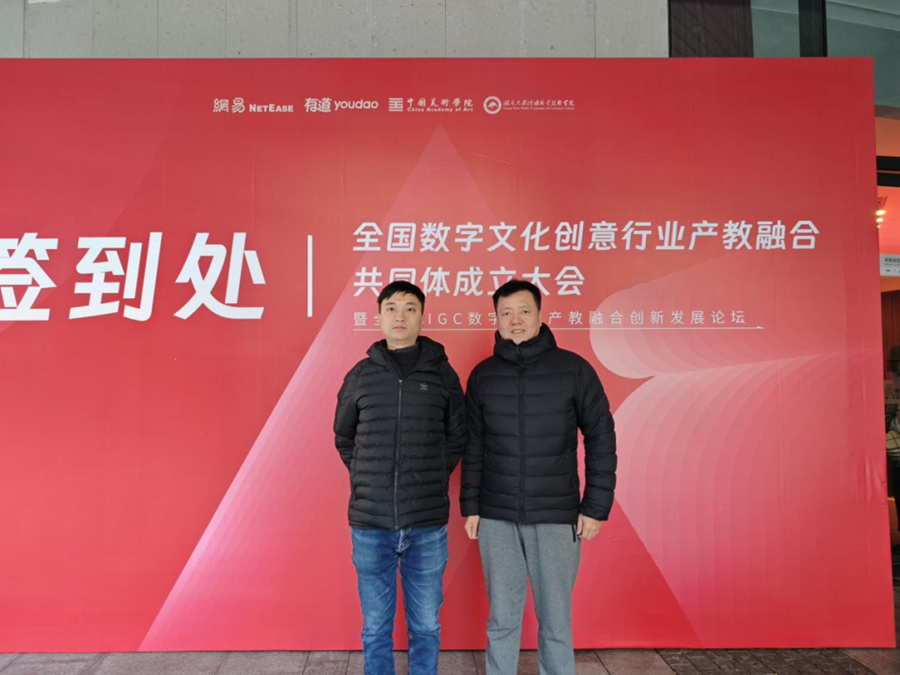 12月17日,全国数字文化创意行业产教融合共同体成立大会暨全国AIGC数字艺术产教融合创新发展论坛在杭州举行,来自各地的专家、学者汇聚一堂,共同探讨数字艺术产教融合创新发展之路。设计学院动漫设计专业带头人孙煜珑,专业教师吴炜栋参加了此次大会。会上宣布了浙江艺术职业学院当选为常务理事单位。