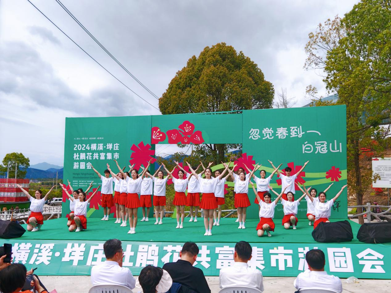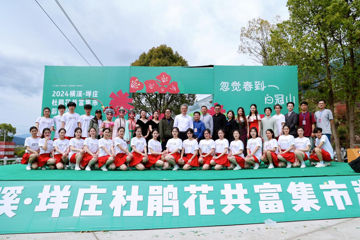 4月3日,“忽觉春到白冠山”2024横溪垟庄杜鹃花共富集市游园会开幕式在仙居横溪镇垟庄村白冠山脚举行。校党委书记薛亮,党委委员、组织部部长、人才办主任周应中出席开幕式。演艺与教育学院2022级表演艺术班25名师生应邀参加开幕式演出,同学们表演的群舞《茉莉花》《风月》《等你来》赢得了现场观众的阵阵喝彩,为开幕式增添了靓丽的青春底色。